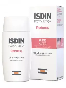 Isdin FotoUltra Redness Spf50 corrige y ayuda a prevenir las rojeces de la piel con Redness, el protector solar de textura ligera que aporta una alta protección contra los rayos UVB/UVA y la luz visible. Contribuye a calmar la sensación de irritación de forma inmediata.